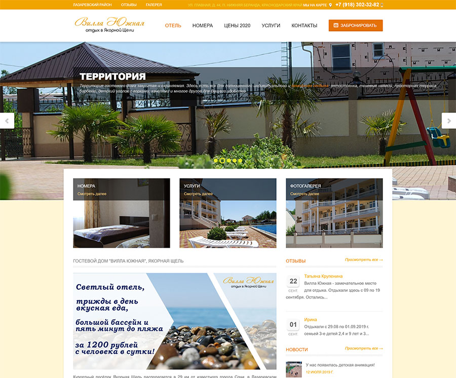 - Модули: быстрая и полная форма бронирования (заявки), новости, фотогалерея, отзывы с возможностью добавления фото, номера (товары) по категориям, карта сайта.