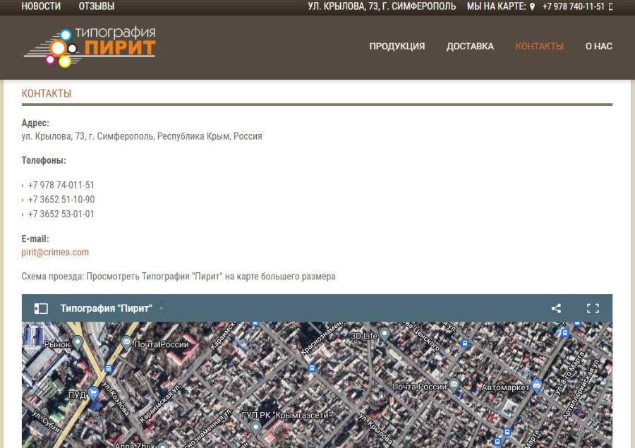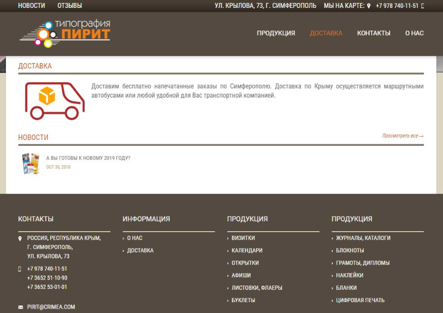 Перед нами стояли следующие задачи – узнать обо всех пожеланиях и требованиях заказчика, изучить конкурентов и заняться созданием сайта типографии http://pirit-print.com. Расскажем об основных преимуществах данного сайта: